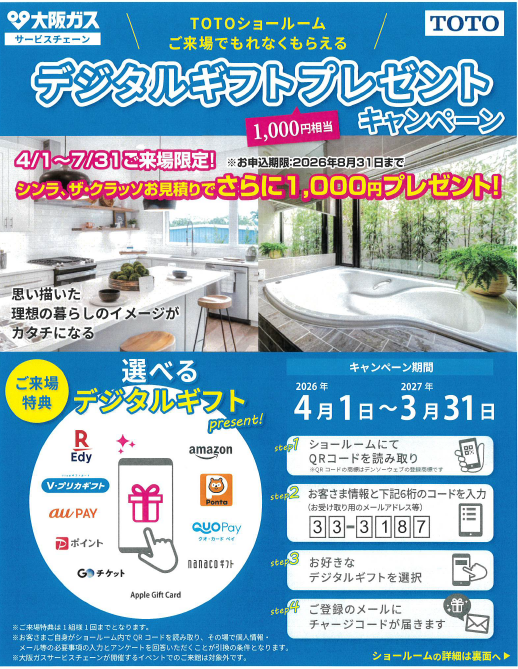 対象:大阪ガスサービスショップにて各メーカーのご予約を頂いた方