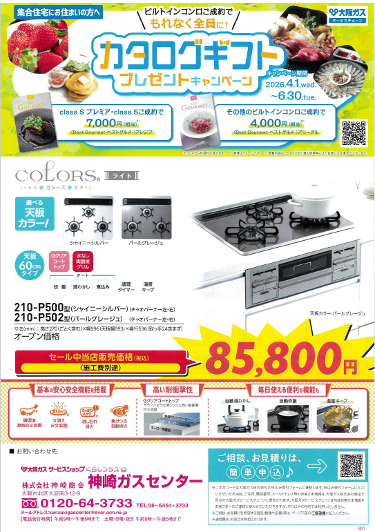 ビルトインコンロご成約でもれなく全員に!カタログギフトプレゼントキャンペーン